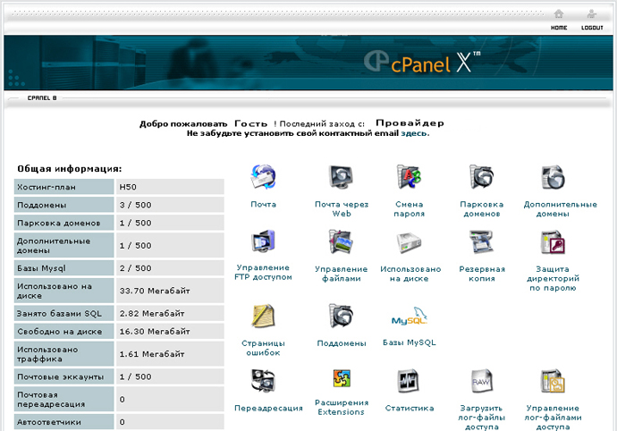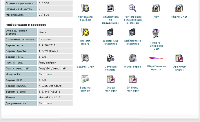 почтовые ящики, менять к ним пароли ), управлять базой данных (Mysql), менять